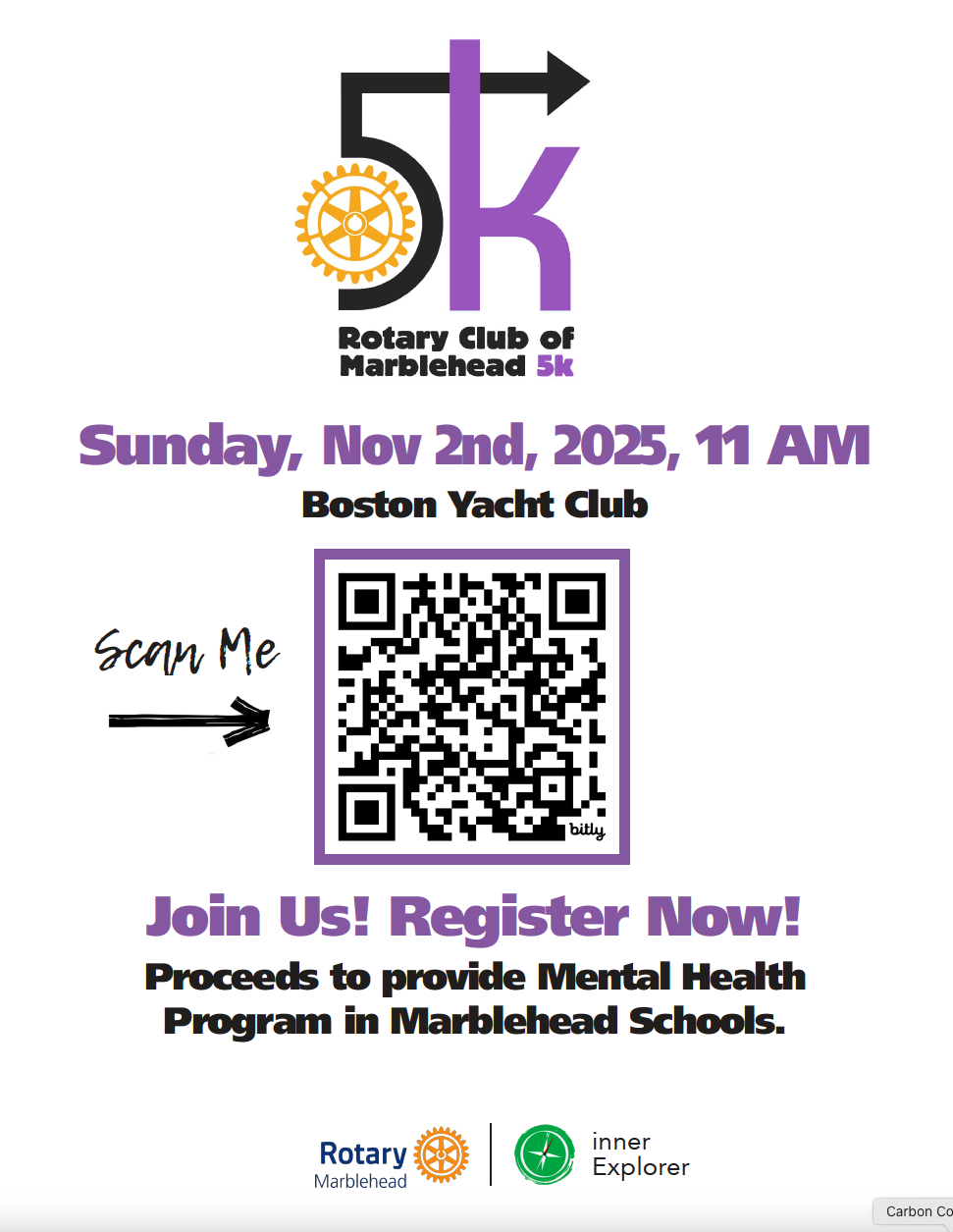 Holiday cheers came early at Marblehead Rotary, as our District Governor, Terry Curran (second from left), showered our club with recognition in many areas of contributions to Rotary Foundation 2020-2021. Among them: Marblehead Rotary is one of the handfuls of clubs to achieve the district's top three highest per capita on annual giving and for individual member participation. In addition, the Marblehead Rotary was recognized as one of the top contributors to the district’s campaign for the Rotary Foundation’s “End Polio Now” fund-raising campaign. Accepting these citations is the past 2020-2021 president, Arthur Schwartz (right), whose leadership steered the club in staying the course during the challenging year of the pandemic, and Blair Lord (left) the 2021-2022 club president.